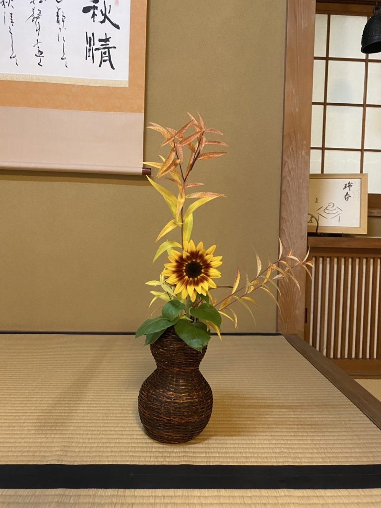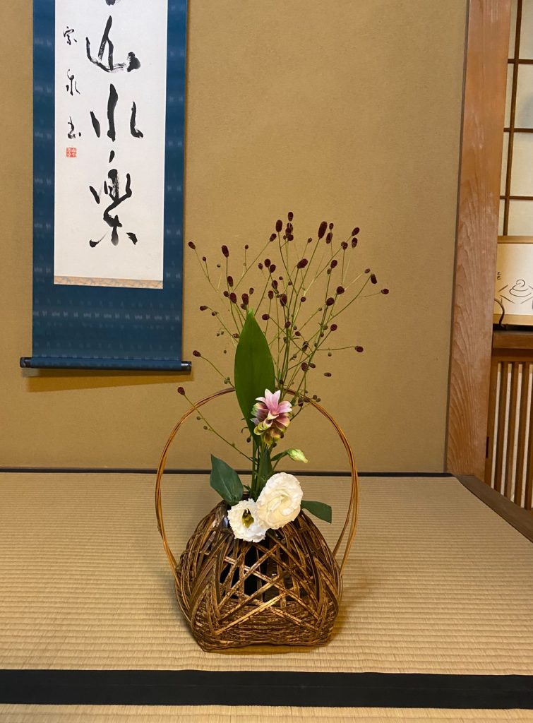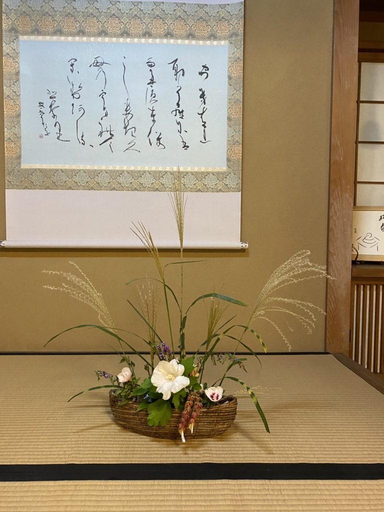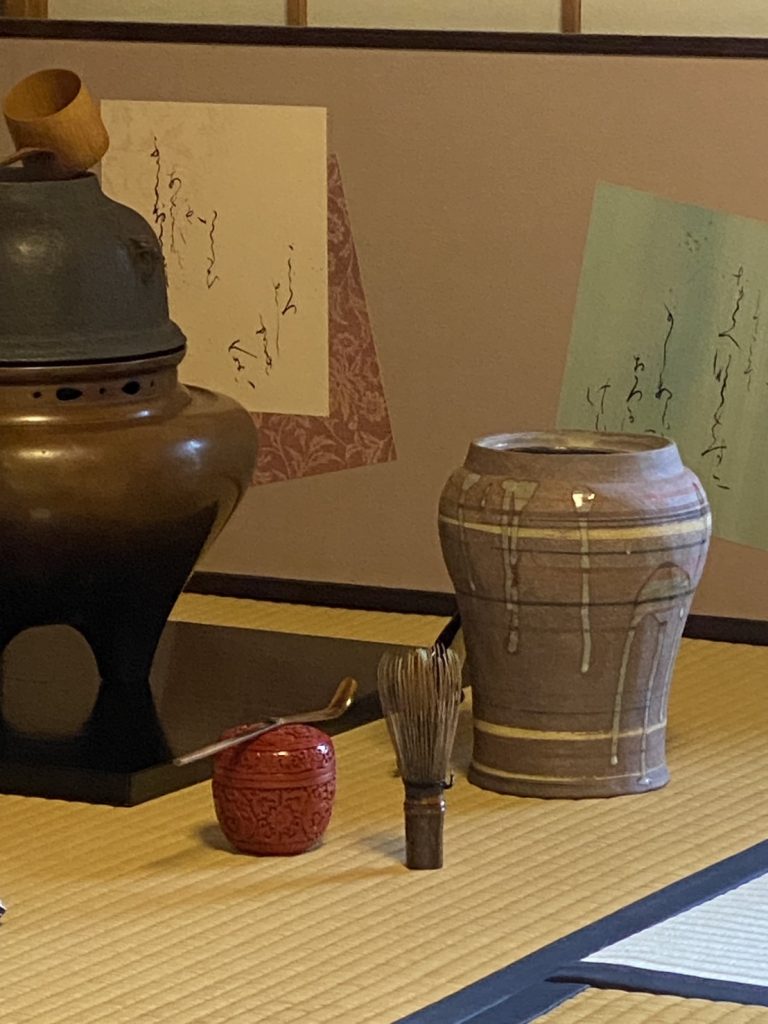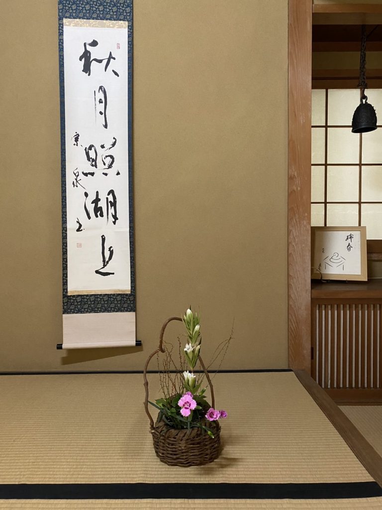 今ではとても希少となってしまった美しい料紙に春と秋の歌が掛かり、茶室はえもいわれぬ気品が漂います。